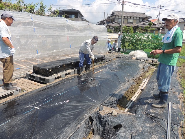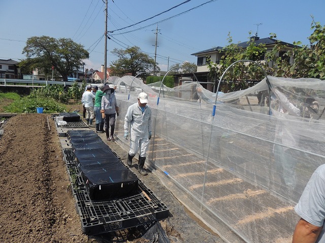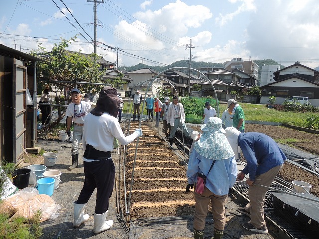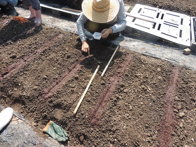 前回被せた黒マルチを取り外し、2年生の畑には大根・人参・カブの種子をまき、1年生の畑に