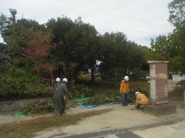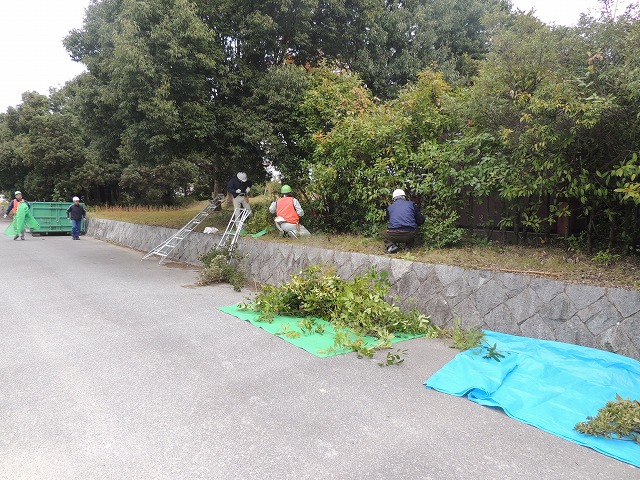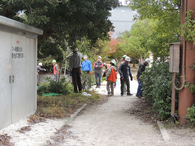 全日 長浜バイオ大学ドーム敷地内の植栽の剪定作業