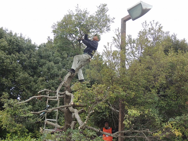高所の剪定をされている北村先生