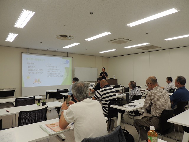 AM 講義 前回の先生の講義のあと、各自が家で植えた花の種の発芽状況を、写真で確認