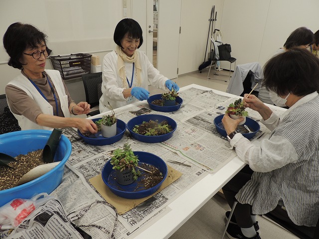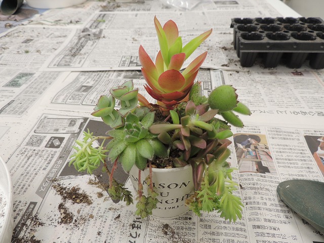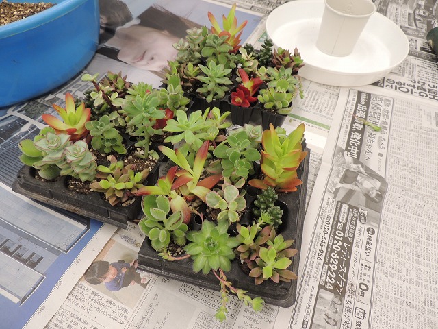 PM 実習 一人5種類の小型多肉植物を選び、小さめの容器に埋め込んでの寄せ植え