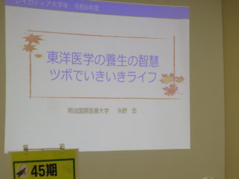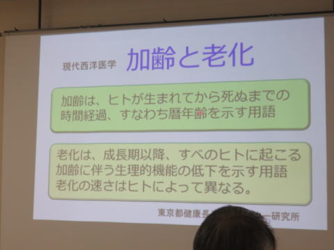 老齢とは何か、様々な老齢に伴う困難を示していただくとともに、東洋医学に基づく対応を教えていただいた。