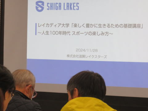 表題をまじえながら、地元で立ち上げたプロバスケットボールチームSHIGA LAKESの活動について話された。皆さん地元プロスポーツに関心があり、多くの質問が為された。