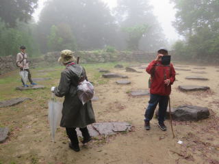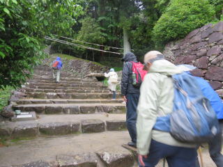 安土城は織田信長により1576年に建てられた。その地は京へ向かう道を抑え、 琵琶湖に面した立地は水運を容易に利用することができた。標高198mの安 土山に地上6階地下1回の壮大な天守とともにその城郭は形成された。 当日天守まで上った。建物は1582年「本能寺の変」の後焼失し今は石垣が当時 の面影を残すのみである。