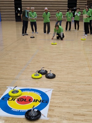 | プロシア―ドアリーナHIKONEを会場として、彦根キャンパスの6クラスが、6種類のニュースポーツを対抗戦で競い合いました。 囲碁ボール、カローリング、ディスクゲッター、ボール運びリレー、じゃんけんサッカーおよび玉入れと老若男女が参加できる競技に「勝より笑」のスローガンのもと、クラス一丸となって楽しくまた熱くプレイしました。 |