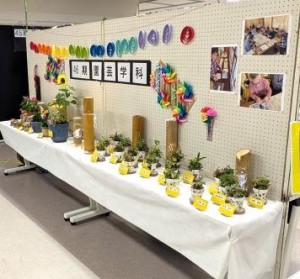 | 【園芸展示物】 ・鉢植植物(イチジク、多肉植物[デコパージュ植木鉢]、シャコバサボテン、ヒマワリ他) ・竹灯篭 ・掲示物(樹木ウォッチング、剪定実習、野菜作り) ・活動スライドショー |