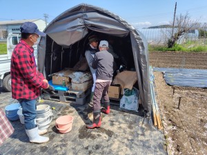 | ようやく園芸部本来の畑実習がはじまりました。午前中は、彦根市松原の畑で土作り。 まずは、有機物、石灰、化成肥料の7種類の肥料を順番に散布し、ミニ耕運機で耕し、マルチングの作業を行いました。10年間放置されていた畑のため、多くの肥料を施しました。 おいしい野菜が収穫できることに期待。 昼休みは、近くの千松会館で大学祭展示用の小鉢デコパージュ作りを全員で実施。 午後は、植え付け準備として、8月実習までに収穫できる野菜作物の苗や種の5種の選定作業及び基本計画を立てました。 |