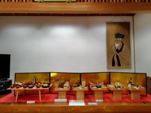 最後に屋内展示室にて郷土の偉人である雨森芳洲の業績について語られた熱弁を拝聴しました。![]() 朝鮮通信使をもてなした豪華な料理を再現 |