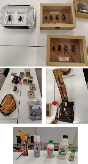 | その後、特定外来生物に指定されたクビアカツヤカミキリについての話がありました。2011年に日本で初めて見つかり、関東、近畿を中心に、又今年は滋賀県でも確認され、各地でウメやモモの果樹及びサクラに被害が広がっています。 |