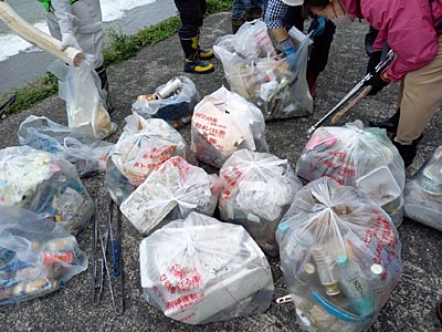 3地点に分かれ、プラ類、ライター、ビニール、ビン等様々なゴミを拾いました。