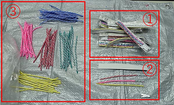 ③ローソクを色ごとに分け、袋と台紙をごみ袋に入れる。 |