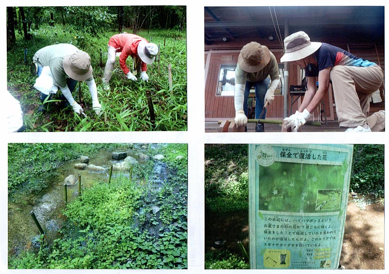 笹草刈りと水草の除草作業