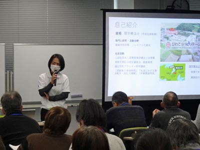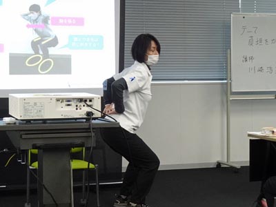生活の場面(洗濯、台所、掃除、買い物など)、重いものを持ち上げるときのコツなどの腰痛予防のポイントを解説していただいた。また、腰痛予防の身体づくりに役立つ体操を紹介していただいた。