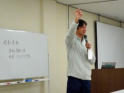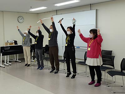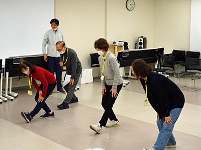 5人一組になって、ロコモ体操を創作し、順番に発表した。 |