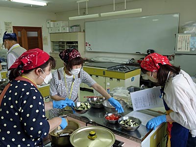 最初に先生から説明を受け、調理を始めました。
